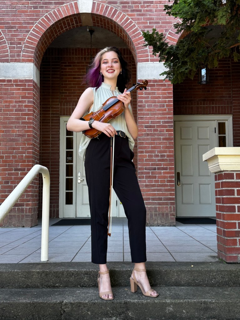 Ellen LaMora, a talented violinist, is based in the vibrant city of Eugene, Oregon. Currently, Ellen is a student at the University of Oregon where she has studied under violinists Fritz Gearhart and Anthea Kreston. Ellen’s passion for music is evident through her dual degrees in Music Education and Violin Performance. Her educational journey at the University of Oregon has provided her with a comprehensive understanding of both the artistry of performance and the importance of sharing her musical knowledge with others.